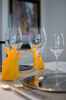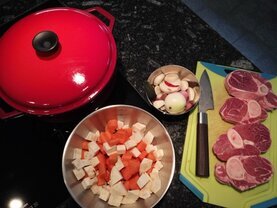 Im Idealfall hast du jederzeit alles griffbereit. Deshalb beginnst du am besten damit, das ausgewählte Rezept einmal durchzugehen und dir zu überlegen, wo welche Gegenstände stehen müssen und welcher Topf oder welche Pfannen schon mal auf dem Herd warten sollte, um beispielsweise die Boullion zu erhitzen oder das Fleisch anzubraten usw.